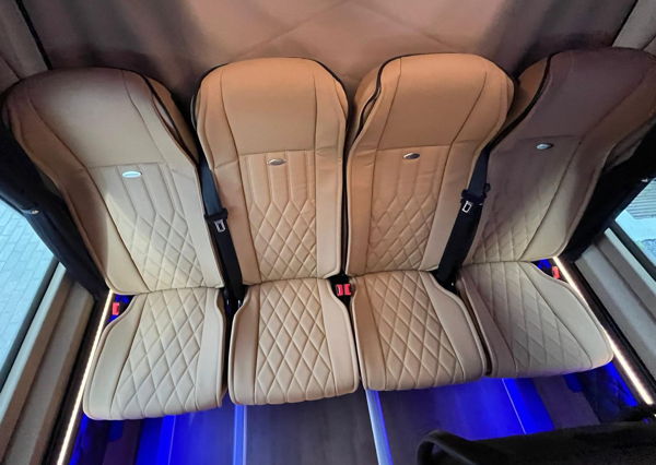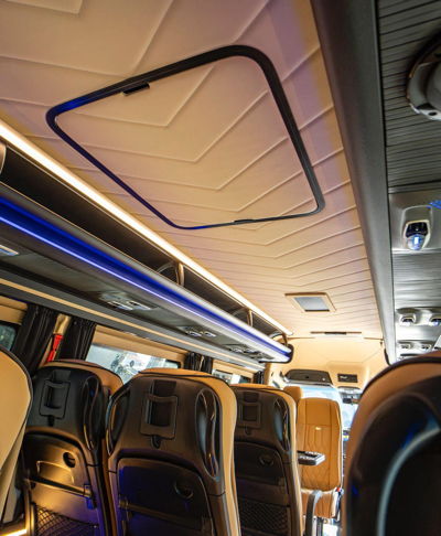 This vehicle combines maximum travel comfort with state-of-the-art technology, offering a unique experience for groups who value style, privacy, and luxurious amenities.